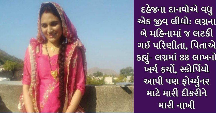 દહેજના દાનવોએ વધુ એક જીવ લીધો: લગ્નના બે મહિનામાં જ લટકી ગઈ પરિણીતા, પિતાએ કહ્યું- લગ્નમાં 88 લાખનો ખર્ચ કર્યો, સ્કોર્પિયો આપી પણ ફોર્ચ્યુનર માટે મારી દીકરીને મારી નાખી
