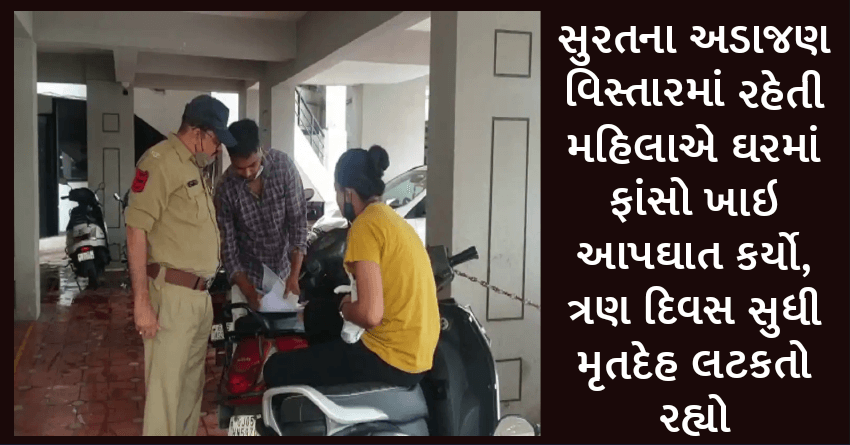 સુરતના અડાજણ વિસ્તારમાં રહેતી મહિલાએ ઘરમાં ફાંસો ખાઇ આપઘાત કર્યો, ત્રણ દિવસ સુધી મૃતદેહ લટકતો રહ્યો