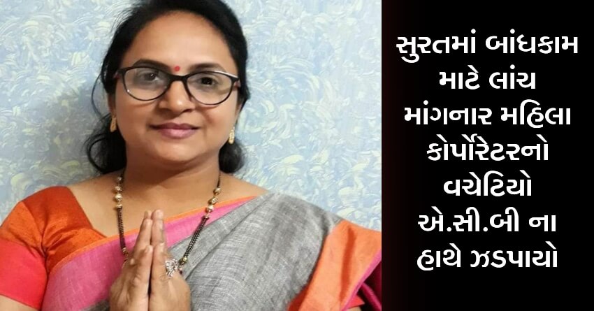 સુરતમાં બાંધકામ માટે લાંચ માંગનાર મહિલા કોર્પોરેટરનો વચેટિયો એ.સી.બી ના હાથે ઝડપાયો