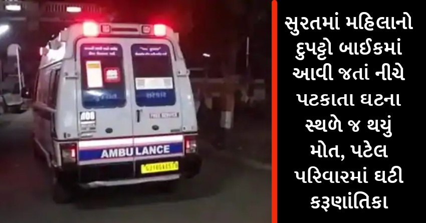 સુરતમાં મહિલાનો દુપટ્ટો બાઈકમાં આવી જતાં નીચે પટકાતા ઘટના સ્થળે જ થયું મોત, પટેલ પરિવારમાં ઘટી કરૂણાંતિકા