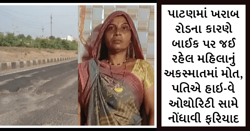 પાટણમાં ખરાબ રોડના કારણે બાઈક પર જઈ રહેલ મહિલાનું અકસ્માતમાં મોત, પતિએ હાઇ-વે ઓથોરિટી સામે નોંધાવી ફરિયાદ
