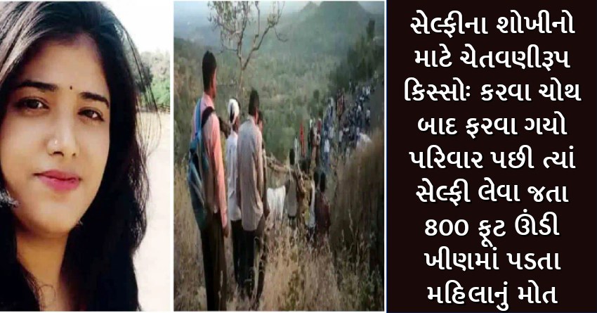 સેલ્ફીના શોખીનો માટે ચેતવણીરૂપ કિસ્સોઃ કરવા ચોથ બાદ ફરવા ગયો પરિવાર પછી ત્યાં સેલ્ફી લેવા જતા 800 ફૂટ ઊંડી ખીણમાં પડતા મહિલાનું મોત