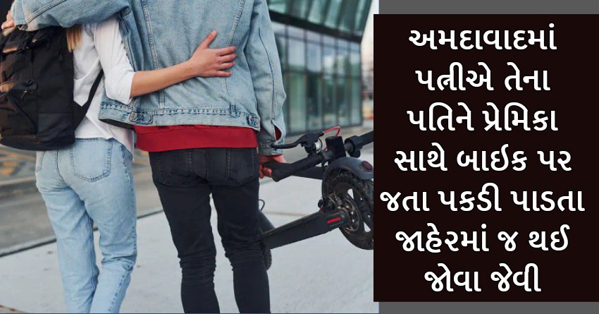 અમદાવાદમાં પત્નીએ તેના પતિને પ્રેમિકા સાથે બાઇક પર જતા પકડી પાડતા જાહેરમાં જ થઈ જોવા જેવી