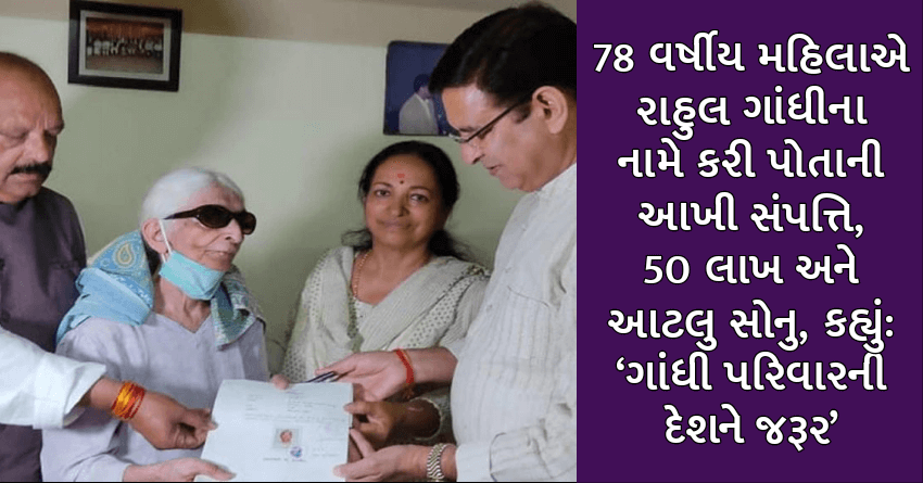 78 વર્ષીય મહિલાએ રાહુલ ગાંધીના નામે કરી પોતાની આખી સંપત્તિ, 50 લાખ અને આટલુ સોનુ, કહ્યું: ‘ગાંધી પરિવારની દેશને જરૂર’