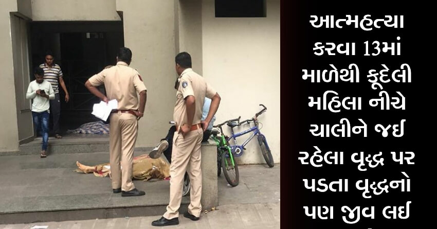 આત્મહત્યા કરવા 13માં માળેથી કૂદેલી મહિલા નીચે ચાલીને જઈ રહેલા વૃદ્ધ પર પડતા બંનેનાં મોત નિપજ્યાં હતાં.