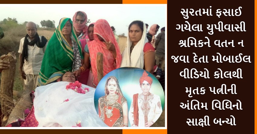 સુરતમાં ફસાઈ ગયેલા યુપીવાસી શ્રમિકને વતન ન જવા દેતા મોબાઈલ વીડિયો કોલથી મૃતક પત્નીની અંતિમ વિધિનો સાક્ષી બન્યો