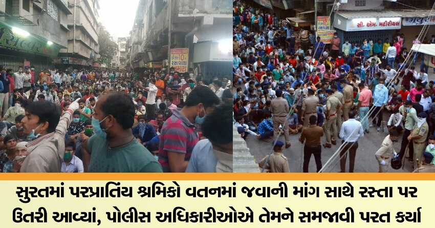 સુરતમાં પરપ્રાતિંય શ્રમિકો વતનમાં જવાની માંગ સાથે રસ્તા પર ઉતરી આવ્યાં, પોલીસ અધિકારીઓએ તેમને સમજાવી પરત કર્યા