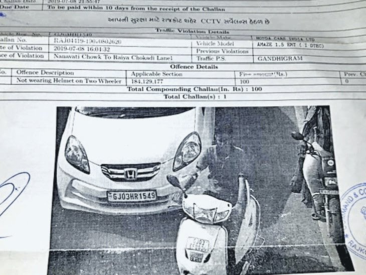 રાજકોટમાં કારચાલકને હેલ્મેટ ન પહેર્યાનો ઇ-મેમો અપાયો, આડેધડ વાહનચાલકોને ઇ-મેમો મોકલાતા રોષની લાગણી ફેલાઇ રહી છે