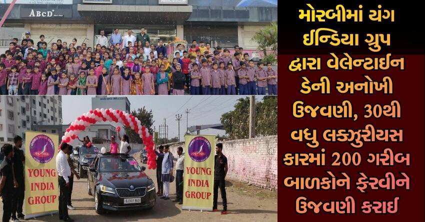 મોરબીમાં યંગ ઈન્ડિયા ગ્રુપ દ્વારા વેલેન્ટાઈન ડેની અનોખી ઉજવણી, 30થી વધુ લક્ઝુરીયસ કારમાં 200 ગરીબ બાળકોને ફેરવીને ઉજવણી કરાઈ