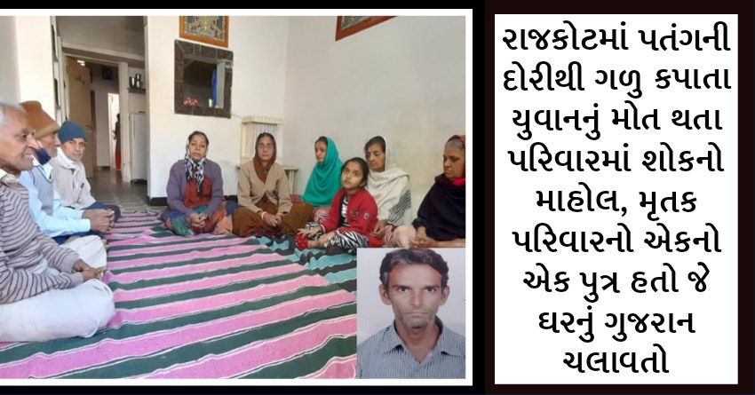 રાજકોટમાં પતંગની દોરીથી ગળુ કપાતા યુવાનનું મોત થતા પરિવારમાં શોકનો માહોલ, મૃતક પરિવારનો એકનો એક પુત્ર હતો જે ઘરનું ગુજરાન ચલાવતો