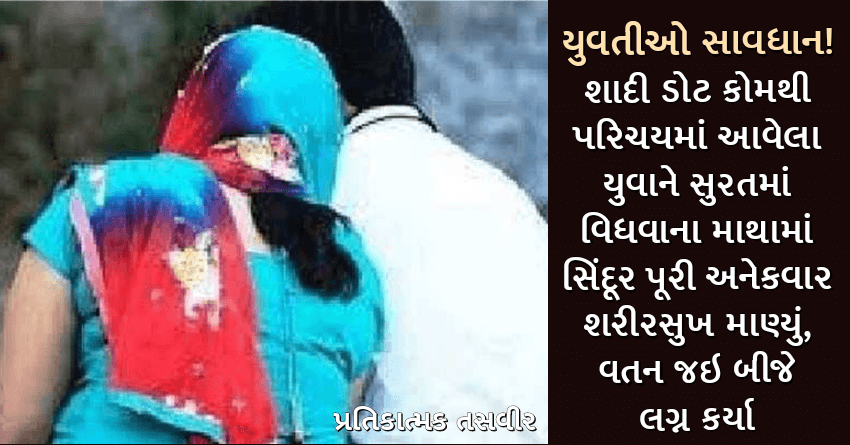 યુવતીઓ સાવધાન! શાદી ડોટ કોમથી પરિચયમાં આવેલા યુવાને સુરતમાં વિધવાના માથામાં સિંદૂર પૂરી અનેકવાર શરીરસુખ માણ્યું, વતન જઇ બીજે લગ્ન કર્યા