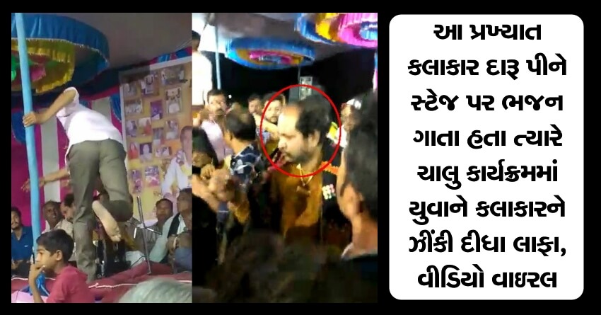 આ પ્રખ્યાત કલાકાર દારૂ પીને સ્ટેજ પર ભજન ગાતા હતા ત્યારે ચાલુ કાર્યક્રમમાં યુવાને કલાકારને લાફા ઝીંકી દીધા, વીડિયો વાઇરલ