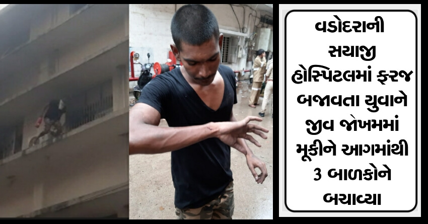વડોદરાની સયાજી હોસ્પિટલમાં ફરજ બજાવતા યુવાને જીવ જોખમમાં મૂકીને આગમાંથી 3 બાળકોને બચાવ્યા