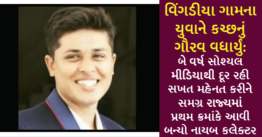 વિંગડીયા ગામના યુવાને કચ્છનું ગૌરવ વધાર્યું: બે વર્ષ સોશ્યલ મીડિયાથી દૂર રહી સખત મહેનત કરીને સમગ્ર રાજ્યમાં પ્રથમ ક્રમાંકે આવી બન્યો નાયબ કલેક્ટર