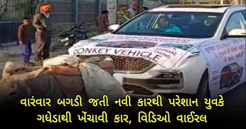 વારંવાર બગડી જતી નવી કારથી પરેશાન યુવકે ગધેડાથી ખેંચાવી કાર, વિડિઓ વાઈરલ