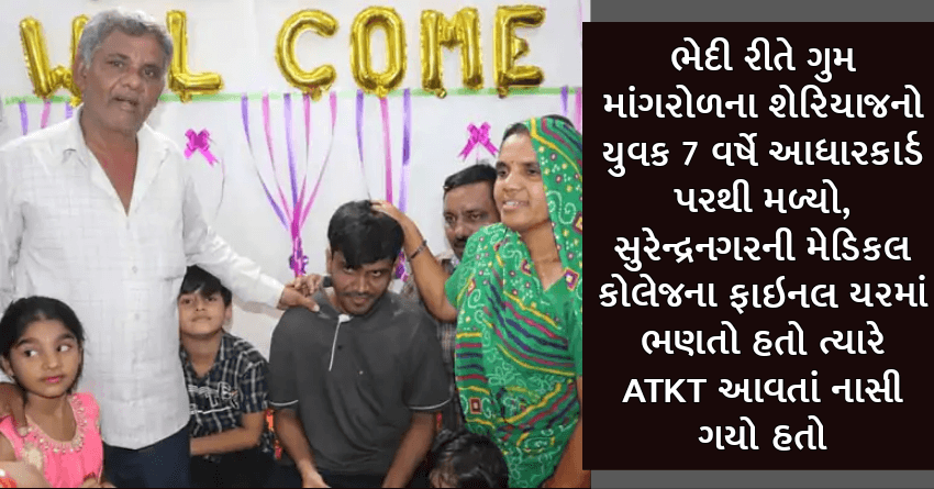 ભેદી રીતે ગુમ માંગરોળના શેરિયાજનો યુવક 7 વર્ષે આધારકાર્ડ પરથી મળ્યો, સુરેન્દ્રનગરની મેડિકલ કોલેજના ફાઇનલ યરમાં ભણતો હતો ત્યારે ATKT આવતાં નાસી ગયો હતો