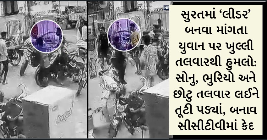 સુરતમાં ‘લીડર’ બનવા માંગતા યુવાન પર ખુલ્લી તલવારથી હુમલો: સોનુ, ભુરિયો અને છોટુ તલવાર લઈને તૂટી પડ્યાં, બનાવ સીસીટીવીમાં કેદ