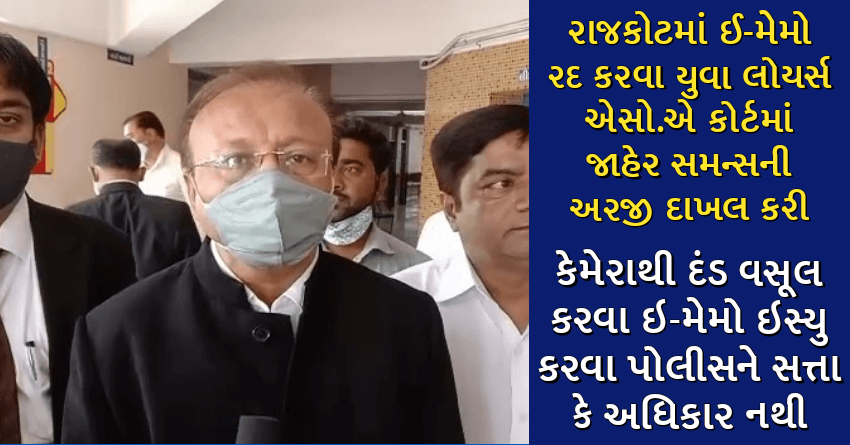 રાજકોટમાં ઈ-મેમો રદ કરવા યુવા લોયર્સ એસો.એ કોર્ટમાં જાહેર સમન્સની અરજી દાખલ કરી, કેમેરાથી દંડ વસૂલ કરવા ઇ-મેમો ઇસ્યુ કરવા પોલીસને સત્તા કે અધિકાર નથી