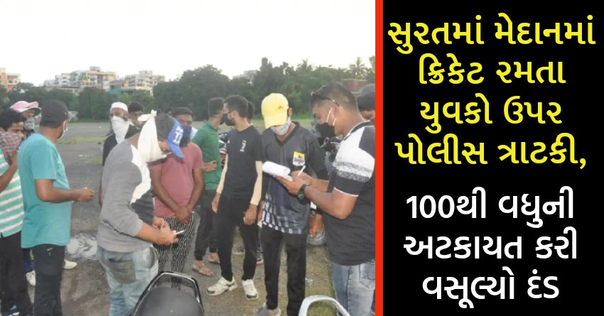 સુરતમાં મેદાનમાં ક્રિકેટ રમતા યુવકો ઉપર પોલીસ ત્રાટકી, 100થી વધુની અટકાયત કરી વસૂલ્યો દંડ