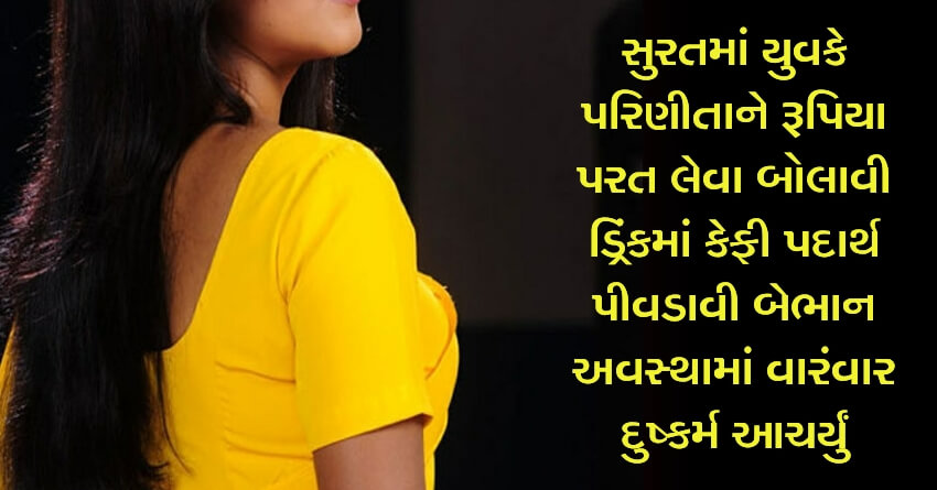 સુરતમાં યુવકે પરિણીતાને રૂપિયા પરત લેવા બોલાવી ડ્રિંકમાં કેફી પદાર્થ પીવડાવી બેભાન અવસ્થામાં વારંવાર દુષ્કર્મ આચર્યું
