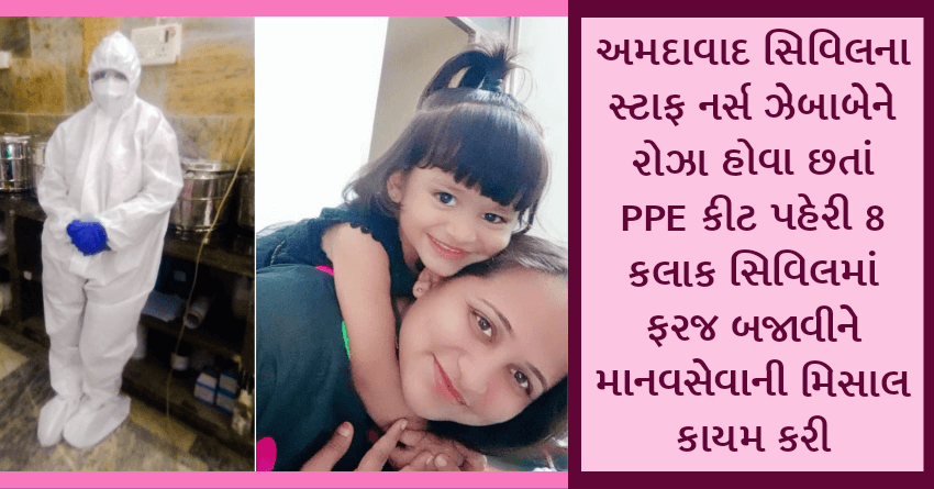 અમદાવાદ સિવિલના સ્ટાફ નર્સ ઝેબાબેને રોઝા હોવા છતાં PPE કીટ પહેરી 8 કલાક સિવિલમાં ફરજ બજાવીને માનવસેવાની મિસાલ કાયમ કરી