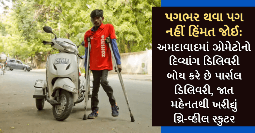 પગભર થવા પગ નહીં હિંમત જોઈ: અમદાવાદમાં ઝોમેટોનો દિવ્યાંગ ડિલિવરી બોય કરે છે પાર્સલ ડિલિવરી, જાત મહેનતથી ખરીદ્યું થ્રિ-વ્હીલ સ્કુટર